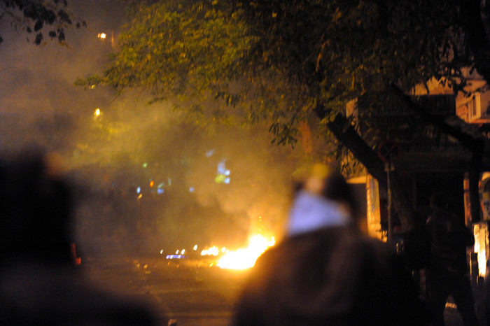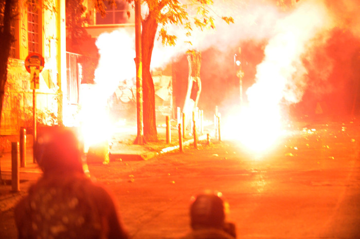 Οι περιοχές αυτές έχουν τυλιχθεί στις φλόγες από τις μολότοφ και τις χειροβομβίδες κρότου λάμψης που ανταλάσσουν οι δύο πλευρές.