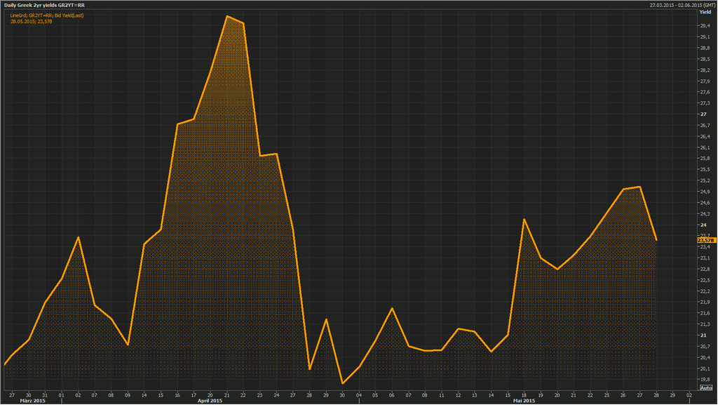 Ο Guardian σημειώνει πως τη στιγμή που ο κυβερνητικός εκπρόσωπος, Γαβριήλ Σακελλαρίδης έκανε λόγο για πρόθεση της κυβέρνης να επιτύχει συμφωνία έως την Κυριακή, η αξία του 2ετούς ομολόγου ενισχυόταν, σε επίπεδα λιγότερο επικίνδυνα όπως δείχνει και το διάγραμμα.