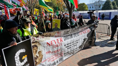 Το πρωί της Τετάρτης μέλη της AHEPA και του Συμβουλίου Ελληνοαμερικανικής Ηγεσίας (HALC) πραγματοποίησαν συγκέντρωση έξω από τον Λευκό Οίκο. Κρατώντας πανό και φωνάζοντας συνθήματα, όπως «να φύγει ο Ερντογάν», «ντροπή στην Τουρκία» και «είσαι τρομοκράτης», Έλληνες ομογενείς, μέλη της AHEPA και του Συμβουλίου Ελληνοαμερικανικής Ηγεσίας (HALC), μαζί με Κούρδους και Αρμένιους διαδήλωσαν υπερασπιζόμενοι τα ανθρώπινα δικαιώματα. Περισσότερα από 100 άτομα συγκεντρώθηκαν από νωρίς χθες το πρωί στην πλατεία Λαφαγιέτ, απέναντι από τον Λευκό Οίκο.