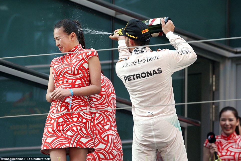 Ο Λιούις Χάμιλτον πανηγύρισε τη 2η νίκη του σε τρία Grand Prix φέτος, στην Σανγκάι όμως ο τρόπος με τον οποίο επέλεξε να πανηγυρίσε κατά τη διάρκεια της απονομής, προκάλεσε αρνητικά σχόλια. Έλουσε με σαμπάνια ένα από τα κορίτσια του grid, ρίχνοντάς της απευθείας στο πρόσωπο χωρίς φυσικά τη θέλησή της.
