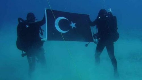 Σε αυτήν, εμφανίζονταν δύο Τούρκοι βατραχάνθρωποι, οι οποίοι έκαναν κατάδυση βόρεια της Κρήτης και πόζαραν κρατώντας τη σημαία της χώρας τους.