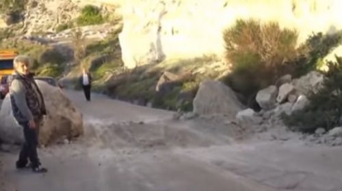 Κατολίσθηση βράχων σε σημείο του δρόμου που οδηγεί στο λιμάνι του Αθηνιού σημειώθηκε στη Σαντορίνη τη Δευτέρα 18/3.