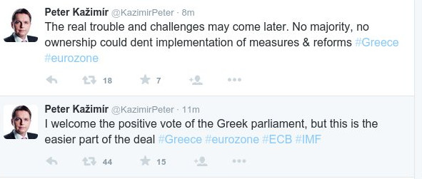 Με το γνωστό δηκτικό του τρόπο, ο ΥΠΟΙΚ της Σλοβακίας, Πίτερ Κάζιμιρ έγραψε την Πέμπτη την άποψή του για το αποτέλεσμα της ψηφοφορίας στην ελληνική Βουλή.