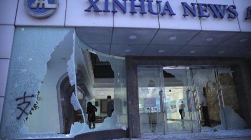 Τα γραφεία του κρατικού κινεζικού πρακτορείου ειδήσεων Xinhua υπέστησαν μεγάλους βανδαλισμούς από αντικυβερνητικούς διαδηλωτές σήμερα στο Χονγκ Κονγκ.
