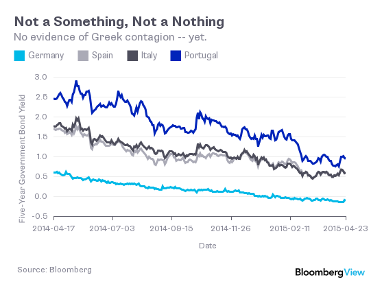 Πόσες πιθανότητες υπάρχουν να υπάρξει μετάδοση της κρίσης από τα στενά ελληνικά όρια σε ολόκληρη την Ευρώπη και στη συνέχεια στην παγκόσμια οικονομική κοινότητα; Το ερώτημα φαίνεται να έχει δύο εκ διαμέτρου αντίθετες απαντήσεις. Μόνο που μπορούν να στέκουν και οι δύο. Το Bloomberg View δίνει τη δική του απάντηση.