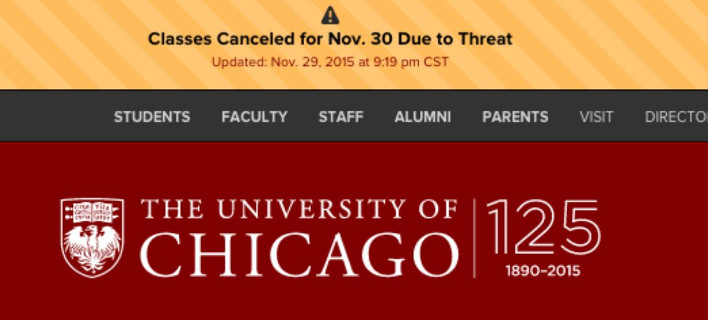 «Βασιζόμενοι στις συστάσεις του FBI και τα πρόσφατα τραγικά γεγονότα σε άλλα πανεπιστήμια στη χώρα αποφασίσαμε να ενεργήσουμε με σύνεση και να ακυρώσουμε όλα τα μαθήματα και τις δραστηριότητες στην πανεπιστημιούπολη του Χάιντ Παρκ έως τα μεσάνυχτα της Δευτέρας».