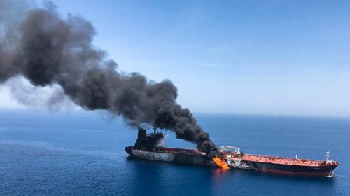 Ένα ιαπωνικό τάνκερ μεταφοράς υγροποιημένου φυσικού αερίου, το Kokuka Courageous και ένα νορβηγικό δεξαμενόπλοιο, το Front Altair, που μετέφερε νάφθρα, δέχτηκαν επίθεση την Πέμπτη στον Κόλπο του Ομάν. Η Ουάσινγκτον κατηγόρησε αμέσως ως υπεύθυνη την Τεχεράνη, η οποία διαψεύδει κάθε εμπλοκή της. Μάλιστα ο υπουργός Εξωτερικών του Ιράν, Μοχαμάντ Τζαβάντ Ζαρίφ χαρακτήρισε «διπλωματική δολιοφθορά» την ταχύτητα με την οποία οι ΗΠΑ επέρριψαν ευθύνες στη χώρα του.