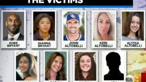 Εκτός από τον Κόμπι και την κόρη του, στο μοιραίο ελικόπτερο επέβαιναν η προπονήτρια της ομάδας, Κριστίνα Μόσερ, ο προπονητής του κολεγιακού μπέιζμπολ του Orange County, Τζόνι Αλτομπέλι, η γυναίκα του, Κέρι και η κόρη του, Αλίσα, ο πιλότος, Άρα Ζομπάγιαν, η Πέιτον Τσέστερ (συμπαίκτρια της Τζιάνα) και η μητέρα της, Σάρα.