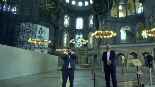 Ένα βίντεο το οποίο κάνει τον γύρο του διαδικτύου έχει προκαλέσει αίσθηση καθώς παρουσιάζει μια ομάδα ατόμων να ηχογραφεί προσευχή μέσα στην Αγιά Σοφιά.