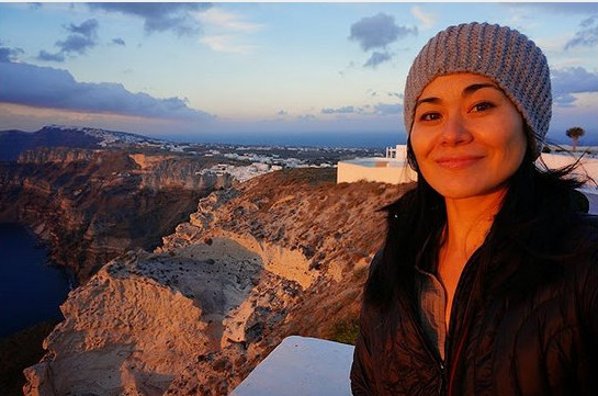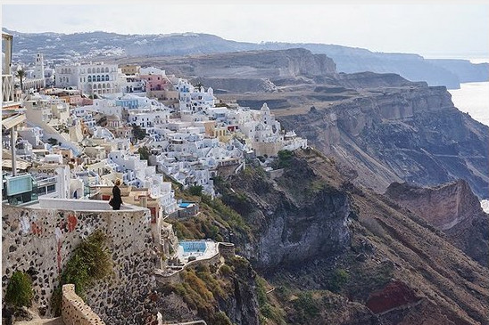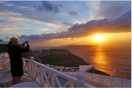 Τελευταίος σταθμός της η Σαντορίνη, για την οποία αναφέρει: «Υπάρχουν πολλοί τρόποι για να σε εντυπωσιάσει, όπως η πανέμορφη θέα στην Καλντέρα, τα ηλιοβασιλέματα, τα ολόλευκα κτίσματα πάνω στον γκρεμό, οι εκκλησίες με τους μπλε τρούλους…».