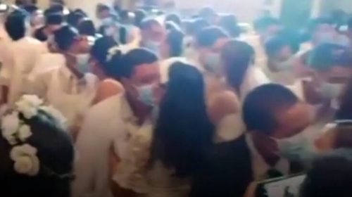 Διακόσια είκοσι ζευγάρια ξεκίνησαν χθες την κοινή τους ζωή στις κεντρικές Φιλιππίνες, ανταλλάσσοντας γαμήλιους όρκους και φιλιά, φορώντας μπλε χειρουργικές μάσκες λόγω της επιδημίας του κορονοϊού.