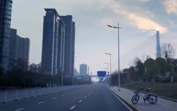 Αν και η Ουχάν κατοικείται από εκατομμύρια κόσμο, οι εικόνες δείχνουν μια πόλη-φάντασμα, με ελάχιστους ανθρώπους να περπατάνε στους έρημους δρόμους.