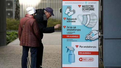 Αυτόματα μηχανήματα που πουλάνε μάσκες, γάντια κι απολυμαντικά υγρά, έκαναν την εμφάνισή τους μέσα στην εβδομάδα αυτή στις δύο μεγαλύτερες πόλεις της Πολωνίας, καθώς η χώρα εντείνει τα μέτρα κοινωνικής απόστασης για να ανασχέσει τη μετάδοση του κορονοϊού.