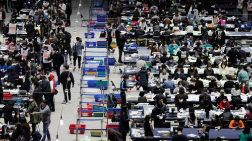 Έτσι οι βουλευτικές εκλογές μετατράπηκαν σε ένα δημοψήφισμα για την απάντηση του προέδρου Μουν στην επιδημία, μια απάντηση που αναφέρεται ως υπόδειγμα σ’ ολόκληρο τον κόσμο σε μια περίοδο που η Νότια Κορέα εξάγει διαγνωστικά τεστ σε μια εικοσαριά χώρες.