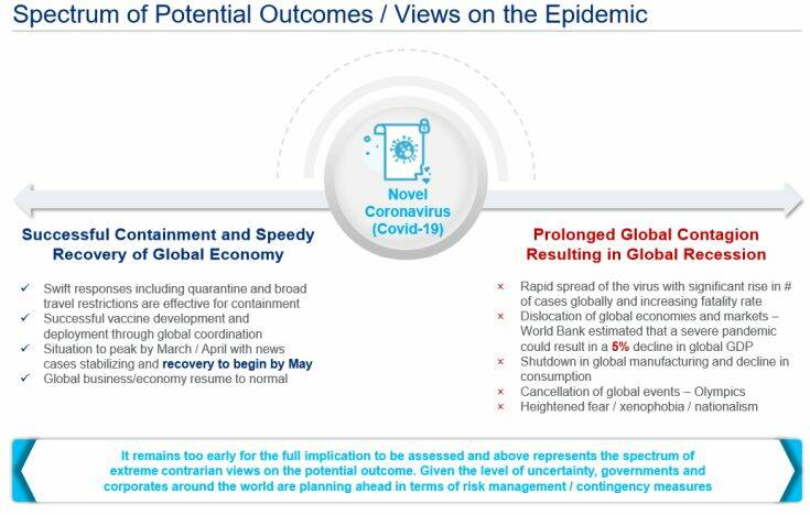 Στο θετικό σενάριο θα υπάρξει μία επιτυχημένη διαδικασία περιορισμού του ιού. Κάτι που θα οδηγούσε σε ταχεία ανάρρωσης της οικονομίας.