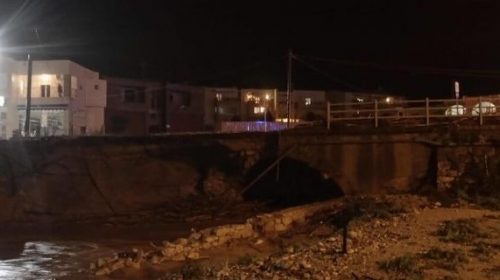 Αργά το βράδυ, κατέρρευσε τμήμα της γέφυρας του Σταυρωμένου Ρεθύμνου, μη μπορώντας να αντισταθεί στατικά στην ορμή των νερών από την Παλαιά Εθνική Οδό.