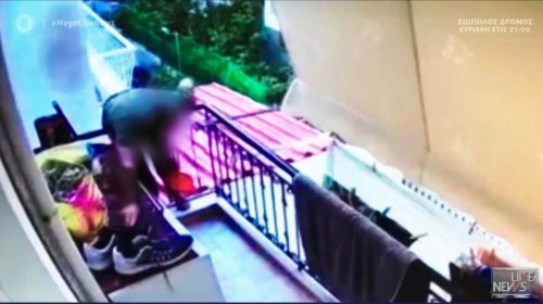 Στο νέο βίντεο του LIVE NEWS τον βλέπουμε να σκαρφαλώνει στο διπλανό σκέπαστρο και αρχικά να κάνει… ασκήσεις ισορροπίας, με την κάμερα ασφαλείας να καταγράφει τις κινήσεις του. Με τα πολλά, καταφέρνει να πιαστεί από τα κάγκελα του μπαλκονιού και εστιάζει σε ένα ζευγάρι παπούτσια.