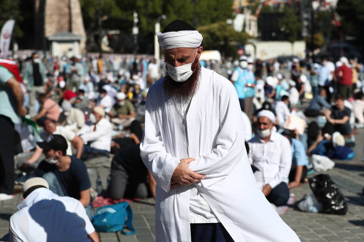 Η πρώτη μουσουλμανική προσευχή πραγματοποιείται σήμερα στην Αγιά Σοφιά, στην οποία έφθασε λίγο μετά τις 12, ο Τούρκος πρόεδρος Ρετζέπ Ταγίπ Ερντογάν, φορώντας μάσκα και συνοδευόμενος απο μεγάλη κουστωδία.