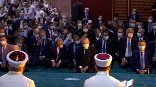 Στην πρώτη μεγάλη προσευχή, παρών θα είναι εκτός από τον Ρετζέπ Ταγίπ Ερντογάν με την οικογένειά του, μέλη του υπουργικού συμβουλίου, ξένοι ηγέτες, ο κυβερνητικός εταίρος του Ερντογάν, ο «Γκρίζος Λύκος», Ντεβλέτ Μπαχτσελί. Δεν θα είναι ο δήμαρχος της Κωνσταντινούπολης Εκρέμ Ιμάμογλου, ούτε ο ηγέτης της αντιπολίτευσης Κεμάλ Κιλιτσντάρογλου.