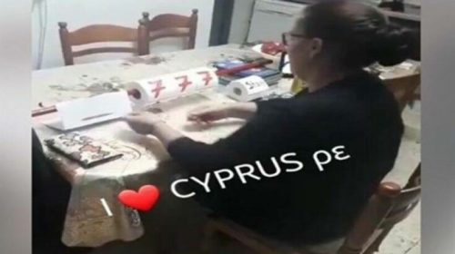 Σύμφωνα με βίντεο που δημοσιοποίησε η σελίδα I Love Cyprus ΡΕ, η κυρία αποφάσισε να φτιάξει κουλοχέρη από χαρτιά υγείας, που θα την βοηθήσει να ξεχαστεί.