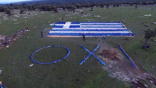 Σύμφωνα με το lesvospost.com, η παράταξη Ελεύθεροι Πολίτες Μυτιλήνης σε συνεργασία με την τοπική Κοινότητα Μανταμάδου, εθελοντές και τον δήμο Δυτικής Λέσβου κατασκεύασαν στην τοποθεσία όπου θα γίνει η νέα δομή ένα τεράστιο ΟΧΙ και μια τεράστια Ελληνική σημαία.
