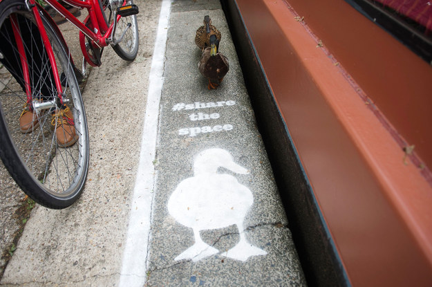 «Βάψαμε λωρίδες για τις πάπιες στα μονοπάτια, μόνο και μόνο για τονίσουμε πως υπάρχει χώρος να μοιραστεί κανείς και πιθανότατα οι πάπιες έχουν προτεραιότητα» δηλώνουν τα μέλη του Canal & River Trust του οργανισμού που ανέλαβε την ενέργεια και που είναι υπεύθυνος για την διατήρηση περισσότερων από 3.220 χλμ υδροβιότοπων στην Αγγλία και την Ουαλία.
