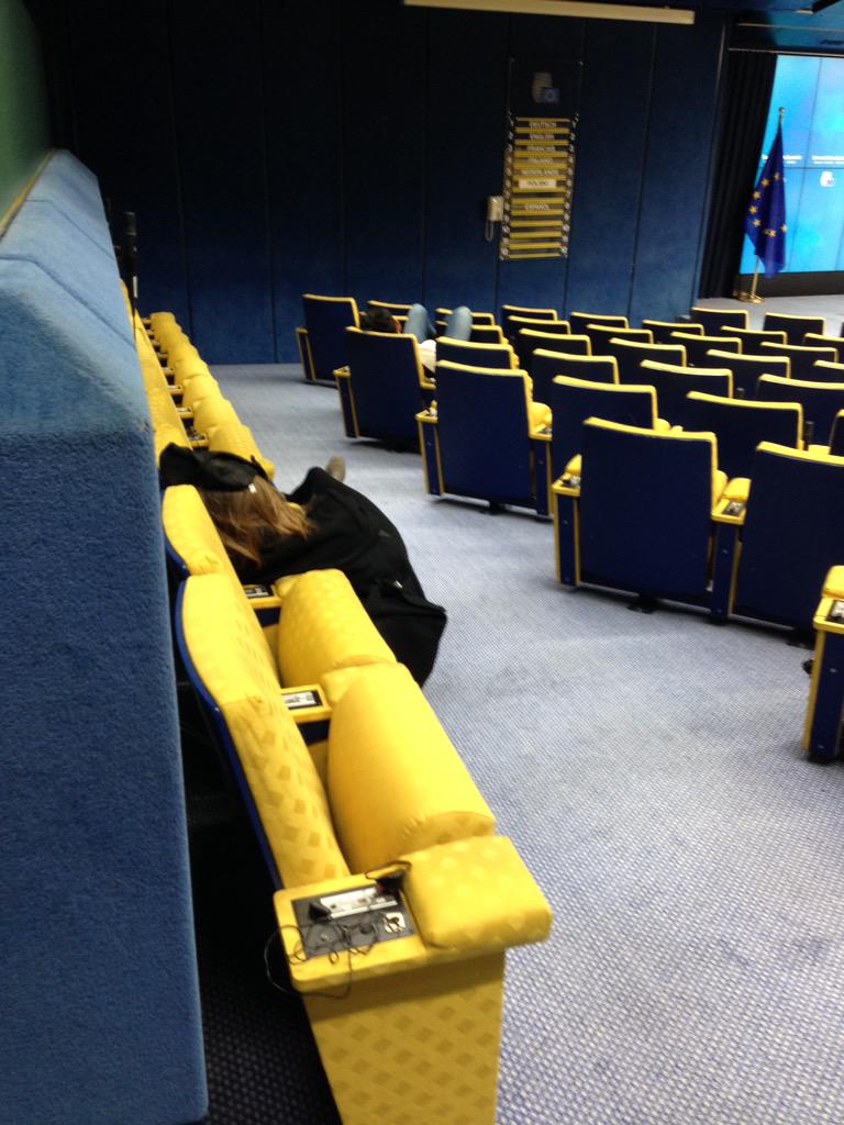 Αναμενόμενα κάποιοι δημοσιογράφοι… λύγισαν. Άλλοι την έπεσαν για ύπνο στα πατώματα, ένας κάτω από γραφείο, άλλοι σε καρέκλες. Οπου βολεύεται ο καθένας.