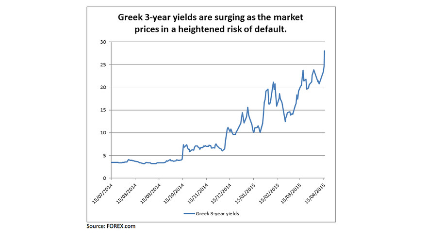 Η κίνηση των ελληνικών ομολόγων είναι ενδεικτική. Το 3ετές κινείται στα επίπεδα του 27% (λίγο πάνω ή λίγο κάτω). Όπως εξηγεί η Κάθλιν Μπρουκς του FOREX.com, «η απόδοση του τριετούς ομολόγου δείχνει τους φόβους ότι η Ελλάδα δεν θα είναι σε θέση να εξοφλήσει τα χρέη της. Τελεί υπό ισχυρή πίεση, καθώς αντιστοιχεί στην ωρίμανση των ελληνικών κεφαλαίων διάσωσης. Ωστόσο, και τα υπόλοιπα ελληνικά ομόλογα (10ετές, 5ετές) δεν πηγαίνουν πίσω, αν και απέχουν ακόμη από τις απαγορευτικές τιμές του Μαρτίου 2012.