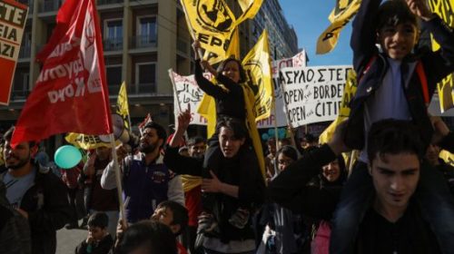 Αντιρατσιστικές κι αντιφασιστικές συλλογικότητες, οργανώσεις της εξωκοινοβουλευτικής αριστεράς καθώς και η δημοτική κίνηση «Ανοιχτή Πόλη», του δήμου Αθηναίων, συγκεντρώθηκαν αρχικά στην πλατεία Βικτωρίας και στην Ομόνοια και κατευθύνθηκαν μέχρι τα γραφεία της Ευρωπαϊκής Ένωσης.
