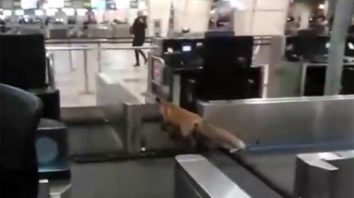 Σε βίντεο που κυκλοφόρησε στα social media, η κόκκινη αλεπού φαίνεται να τριγυρίζει πίσω από τους πάγκους των υπαλλήλων του αεροδρομίου, πιθανότατα προσπαθώντας να διαφύγει διαμέσου των ιμάντων, πριν να γυρίσει και να τρέξει προς τα παράθυρα.