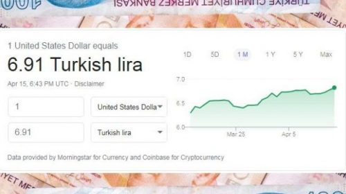 Συγκεκριμένα, σήμερα Μεγάλη Τετάρτη, η ισοτιμία διαμορφώθηκε στις 6,91 λίρες έναντι ενός δολαρίου. Τονίζουμε ότι εάν φτάσει 7 λίρες έναντι ενός δολαρίου και μείνει εκεί, τότε η τουρκική οικονομία πέθανε.