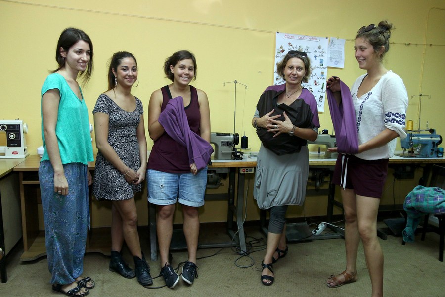 Στο πλευρό τους και η νεαρή Εστερ, άρτι αφιχθείσα από τη Γαλλία για να παρακολουθήσει πρόγραμμα της Ευρωπαϊκής Εθελοντικής Υπηρεσίας στις Ενωμένες Κοινωνίες των Βαλκανίων και η οποία ενδιαφέρθηκε αμέσως για την δράση. Όπως και η 21χρονη Κριστίνα, που ήρθε 2 χρονών στην Ελλάδα από την Αλβανία και εντάχθηκε στην ομάδα για να κάνει ότι μπορεί, κι ας μην ξέρει ακόμα να ράβει.