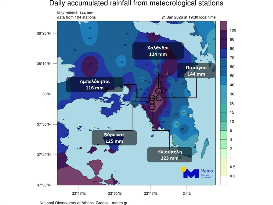 Τα επίσημα στοιχεία μέχρι τις 20:00 δείχνουν ότι οι περιοχές που δέχτηκαν το μεγαλύτερο φορτίο ήταν: