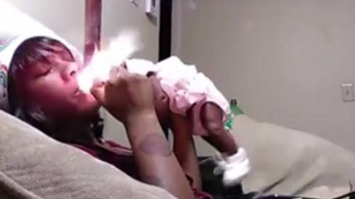 Το βίντεο διάρκειας 43 δευτερολέπτων, που το ανάρτησε κάποιος άλλος χρήστης, δείχνει τη γυναίκα να καπνίζει με το ένα χέρι και να κρατάει απρόσεχτα την 1 μηνός κόρη της. Δεν είναι ωστόσο σαφές τι κάπνιζε.