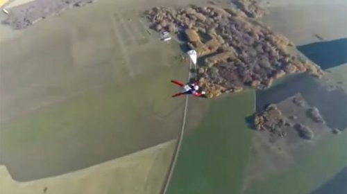 Στο βίντεο φαίνεται ότι δεν ανοίγει το βασικό αλεξίπτωτο του άτυχου Ρώσου, ο οποίος προσπάθησε άμεσα να ενεργοποιήσει το εφεδρικό τα σκοινιά του οποίου, όμως, μπλέχτηκαν, με αποτέλεσμα να πέσει στο κενό και να σκοτωθεί.