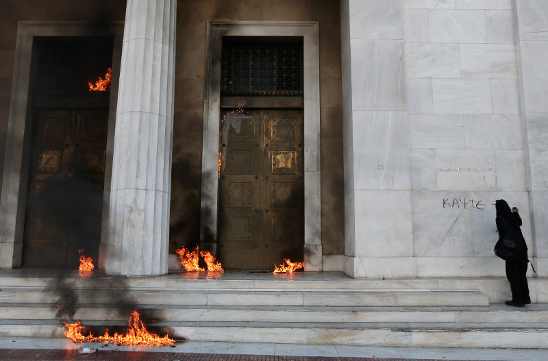 Ζημιές προκλήθηκαν και στο κτίριο της Τράπεζας της Ελλάδος, ενώ ένα βαν του ΟΤΕ παραδόθηκε στις φλόγες από ρίψη μολότοφ. Μάλιστα σύμφωνα με πληροφορίες, ο οδηγός του βαν είχε βγει από αυτό μόλις λίγα λεπτά πριν.