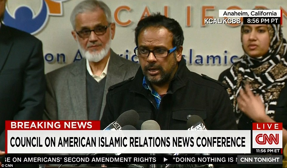 Σε συνέντευξη Τύπου που πραγματοποιήθηκε στα γραφεία του Συμβουλίου Αμερικανο-Ισλαμκών Σχέσεων ο γαμπρός του δράστη δήλωσε έκπληκτος. Σύμφωνα με τον ίδιο, είχε μιλήσει με το Farook μόλις μία εβδομάδα πριν το τραγικό περιστατικό και δεν είχε «απολύτως καμία ιδέα γιατί το έκανε αυτό». «Έχω σοκαριστεί», δήλωσε ο Farhan Khan, που είναι σύζυγος της αδερφής του φερόμενου ως δράστη.