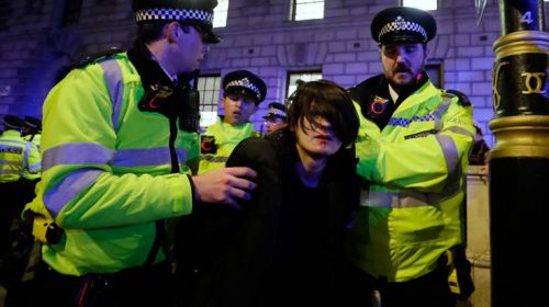 Οι διαδηλωτές κρατώντας πλακάτ που έγραφαν «Αψηφήστε την εξουσία των Τόρις» και «Ευπρόσδεκτοι οι πρόσφυγες» περπάτησαν με βήμα ταχύ από την πρωθυπουργική κατοικία στη Ντάουνινγκ Στριτ έως την πλατεία Τραφάλγκαρ μπλοκάροντας την κυκλοφορία υπό το βλέμμα μεγάλης αστυνομικής παρουσίας.
