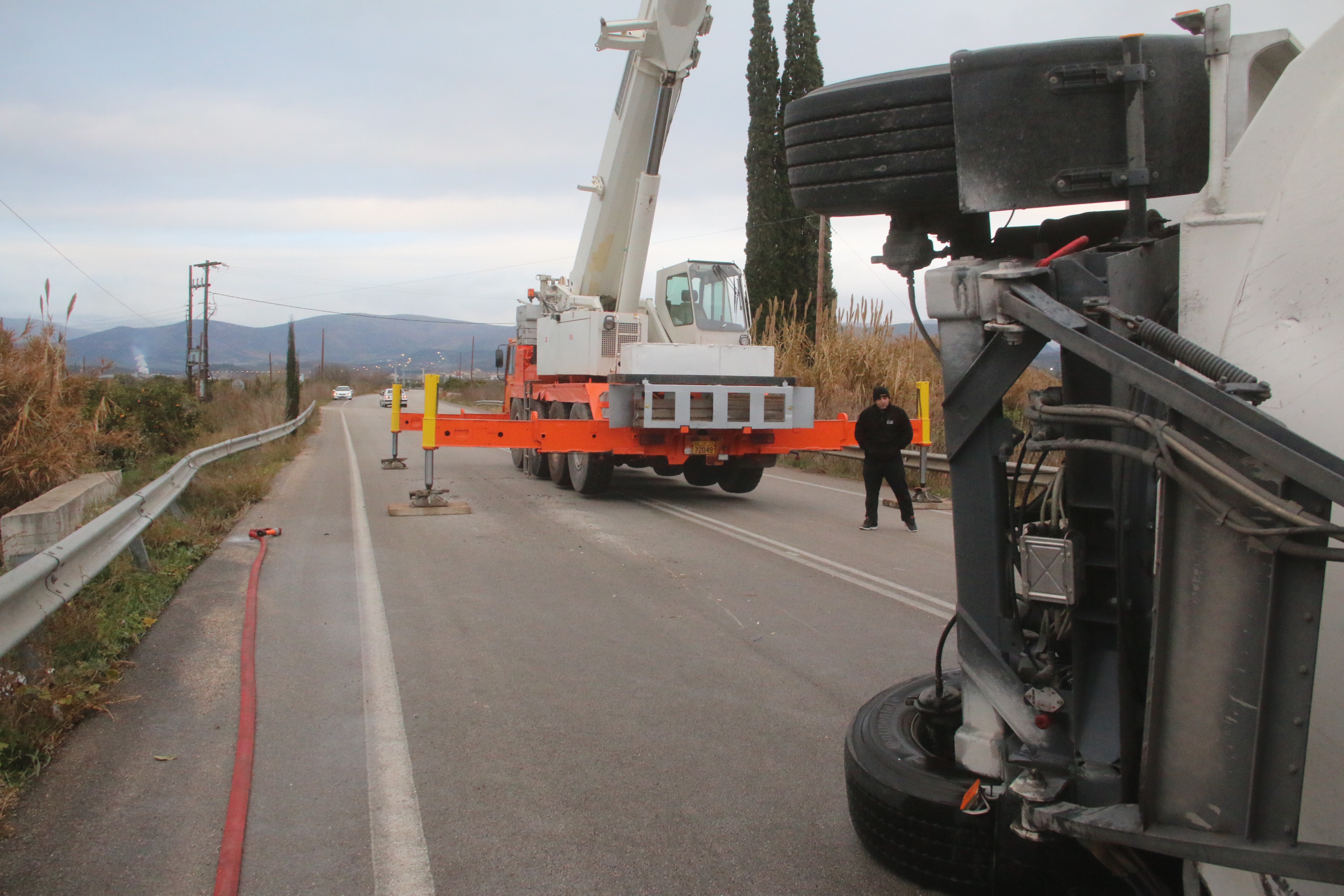 Σύμφωνα με όσα είπε στις αρχές ο οδηγός του συρόμενου, προσπάθησε να αποφύγει σκυλί που βρισκόταν στο οδόστρωμα, με αποτέλεσμα το πίσω μέρος της νταλίκας να ντεραπάρει και να ανατραπεί στην εθνική οδό κλείνοντας και τα δύο ρεύματα κυκλοφορίας.