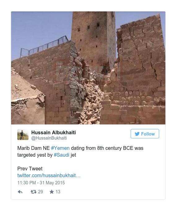 Ένα από τα μεγαλύτερα μηχανικών θαύματα του αρχαίου κόσμου, το μεγάλο φράγμα της Μαρίμπ στην κεντρική Υεμένη, καταστράφηκε σε πρόσφατη αεροπορική επιδρομή, σύμφωνα με δημοσιεύματα τοπικών ειδήσεων και ντόπιους αρχαιολογικούς εμπειρογνώμονες.
