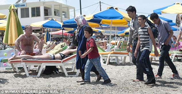 «Κάτω από τον καυτό ελληνικό ήλιο, 19 Αφγανοί μετανάστες περπατούν κατά μήκος της παραλίας στο νησί της Κω, μπροστά σε σαστισμένους Βρετανούς τουρίστες που λιάζονται στην ακτή.