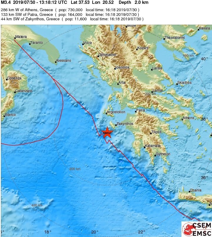 Έγινε στις 16:18 το απόγευμα, με επίκεντρο 55 χιλιόμετρα από τη Ζάκυνθο.