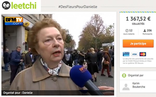 Κάποιοι άνοιξαν έναν κουμπαρά στο διαδίκτυο για να αγοράσουν τα λουλούδια στην Ντανιέλ. «Σε αυτούς τους σκοτεινούς καιρούς, υπάρχουν μερικές φορές κάποιες εφήμερες εικόνες, που αρέσουν στα μέσα κοινωνικής δικτύωσης. Η Ντανιέλ είναι ένα από τα πρόσωπα που συνοψίζει σε λίγες λέξεις το στοίχημα που έχουμε όλοι μας. Τα λόγια της είναι καθηλωτικά, απλά, ανθρώπινα, σοφά», γράφει το μήνυμα του ιντερνετικού «κουμπαρά».