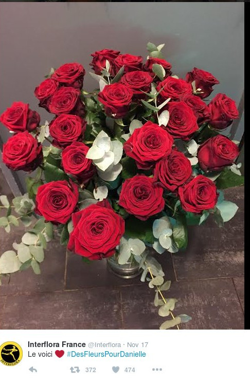 Αλλοι χρήστες απάντησαν αμέσως στο μήνυμά του με το hashtag #DesFleursPourDanielle, «Λουλούδια για την Ντανιέλ», όπως βρήκαν ότι είναι το μικρό της όνομα.