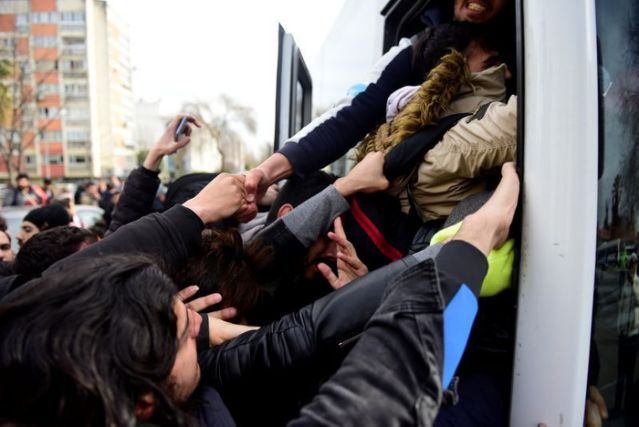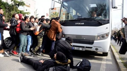 Εκατοντάδες πρόσφυγες και μετανάστες συνωστίζονται από τα ξημερώματα στη λεωφόρο Βατάν της Κωνσταντινούπολης και περιμένουν τη σειρά τους για να ανέβουν σε κάποιο λεωφορείο το οποίο θα τους οδηγήσει αρχικά στην Ανδιανούπολη.