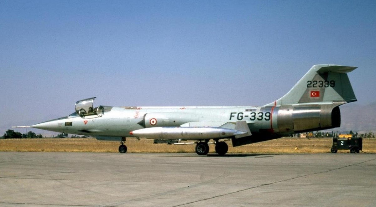 ουρκικό F-104G της 141 Filo φωτογραφημένο στην αεροπορική βάση Murted το 1973. Το κυκλικό εθνόσημο υιοθετήθηκε από το 1972. Ο αριθμός των τουρκικών F-104G και F-5A/B ήταν σχεδόν ίδιος με αυτόν που παραχωρήθηκε στην Ελλάδα μέσω MAP την περίοδο 1964-1965. Αυξήθηκε κατακόρυφα στη δεκαετία του ‘80 όταν παραλήφθηκαν πολλά αεροσκάφη από τη Γερμανία (κυρίως) και την Ολλανδία.