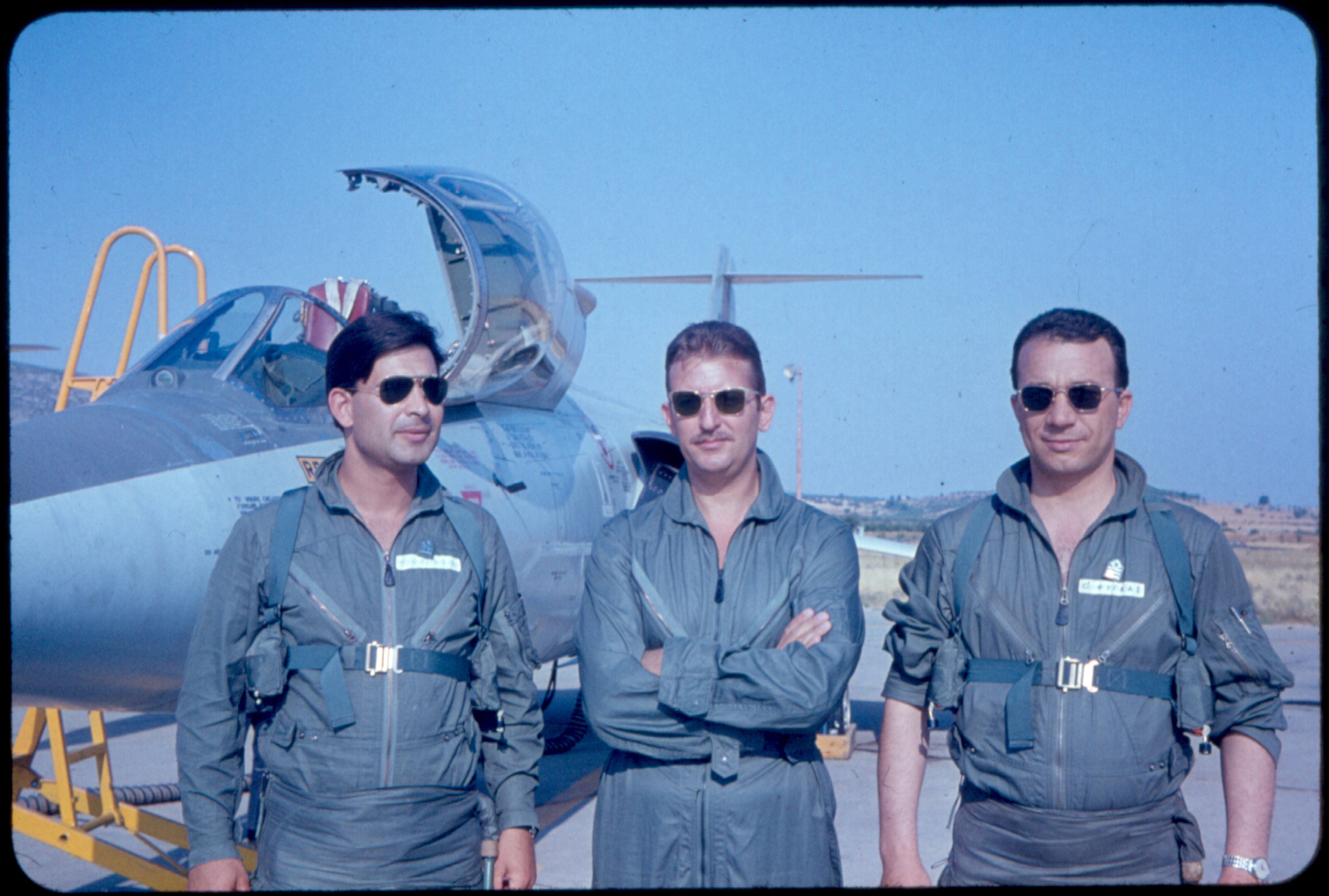 Ο Πρωτόππαπας (στη μέση) με τους δύο πρώτους διοικητές των 335 και 336 Μοιρών όταν αυτές εξοπλίστηκαν με F-104G στην Τανάγρα το 1965.