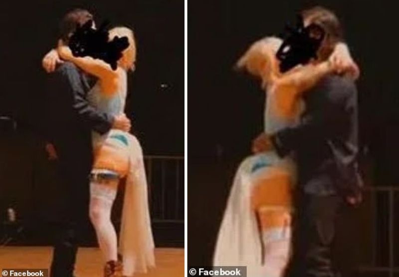 Η νύφη, πάνω στη χαρά της δεν δίστασε να βγάλει το νυφικό και να χορέψει τον πρώτο χορό με τον σύζυγό της, υπό τους ήχους αργής μουσικής, ημίγυμνη.