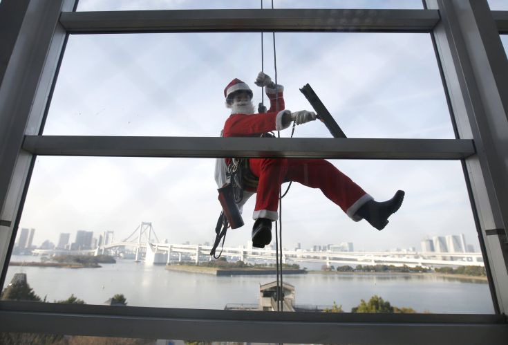 Αφού δεν μπορούσαν να αποφύγουν τη δουλειά, δυο καθαριστές τζαμιών από το Τόκιο, είπαν να την απολαύσουν και ντύθηκαν στο κλίμα των ημερών.