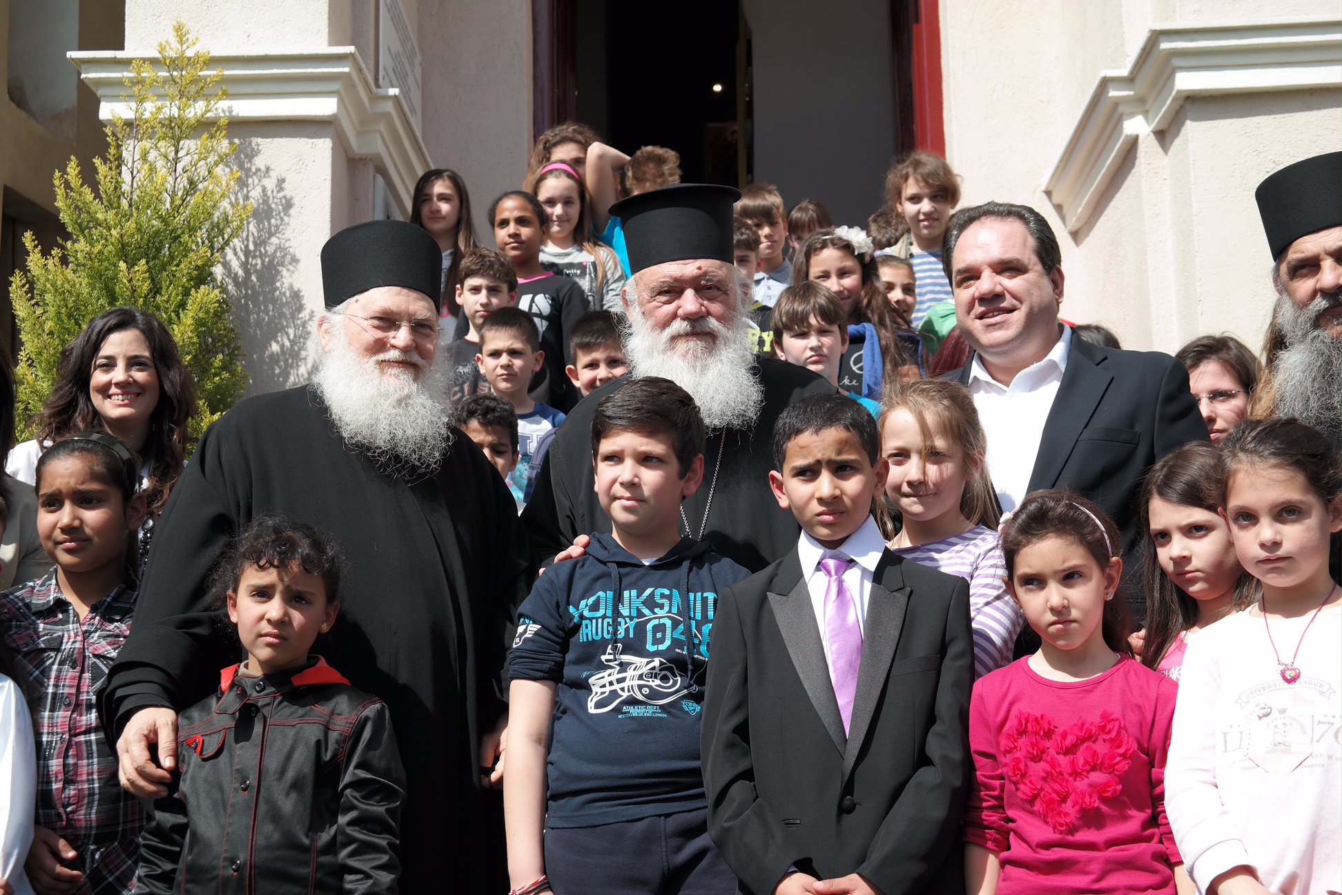Ο ηγούμενος Εφραίμ, μαζί με τον Μακαριώτατο Αρχιεπισκόπο Αθηνών και πάσης Ελλάδος κ.κ. Ιερώνυμο, τον Μητροπολίτη Ιωαννίνων Μάξιμο, τον Μητροπολίτη Νέας Ιωνίας και Φιλαδελφείας Γαβριήλ, τον Πρωτοσύγκελο της Αρχιεπισκοπής Αθηνών Αρχιμ. Συμεών Βολιώτη, τον Πρωτοσύγκελο Νέας Ιωνίας και Φιλαδελφείας Αρχιμ. Επιφάνιο Αρβανίτη, μοναχούς της Μονής Βατοπαιδίου και ο Γενικός Διευθυντής της Αποστολής κ. Κωνσταντίνος Δήμτσας παρακάθισαν σε γεύμα μαζί με τα παιδιά.